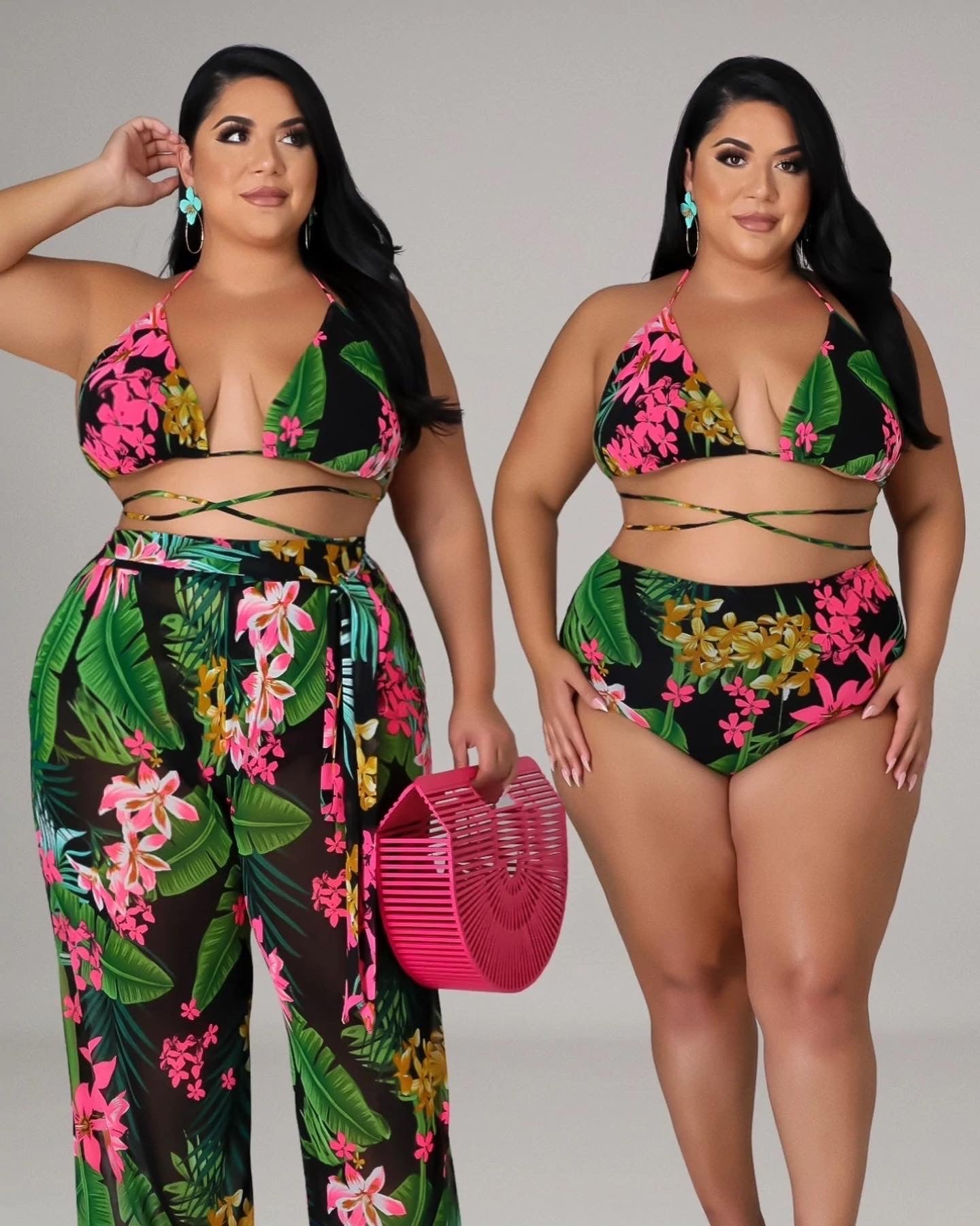 - 3 Piece (Long Flare Pants, Bikini Set)