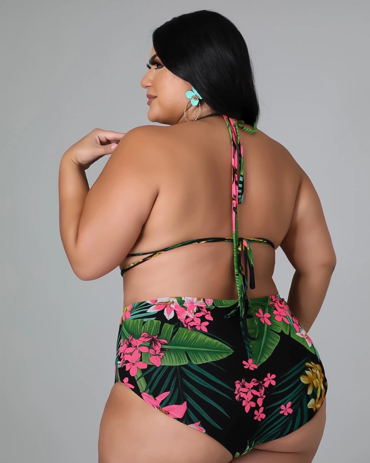 Black Floral Swimsuit Set